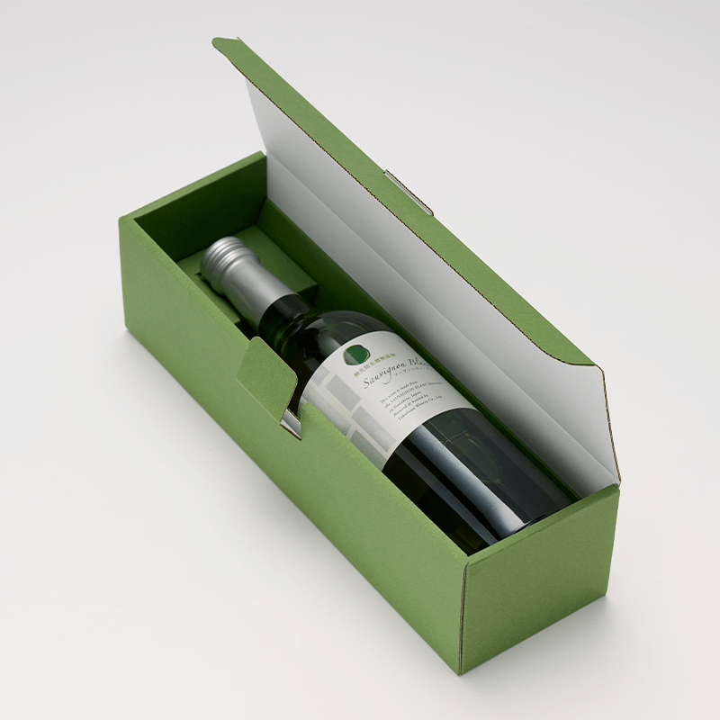 グリーン色の中瓶1本入汎用ギフトケースです。