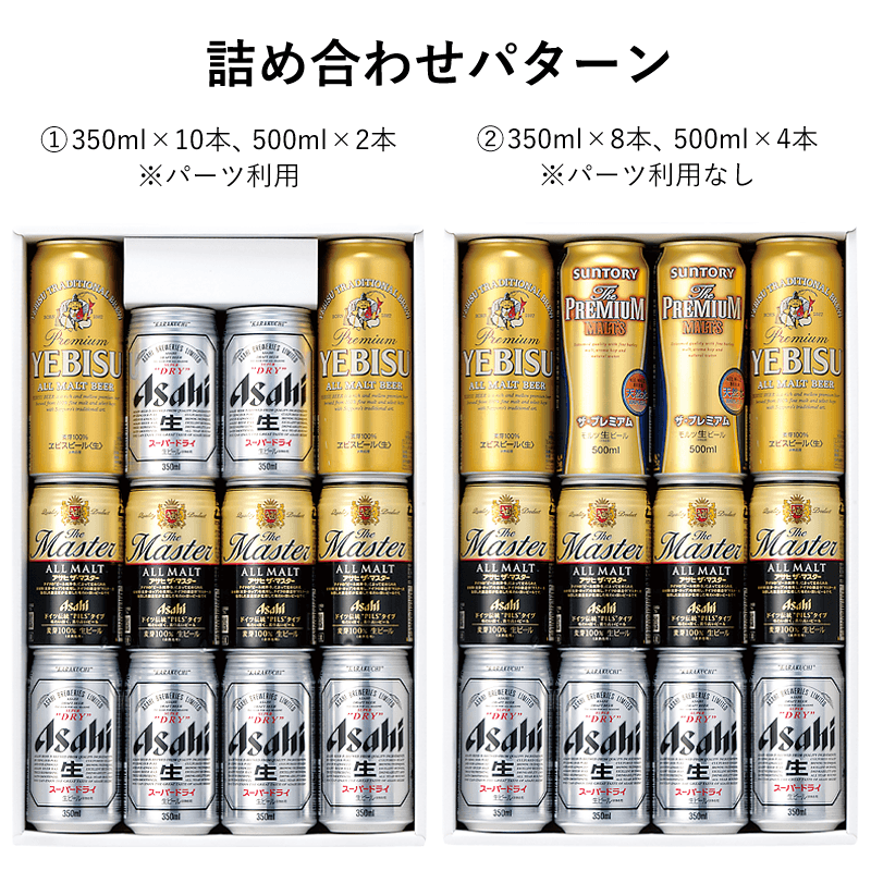 ②詰合せパターン : 350mL×8本、500mL4本