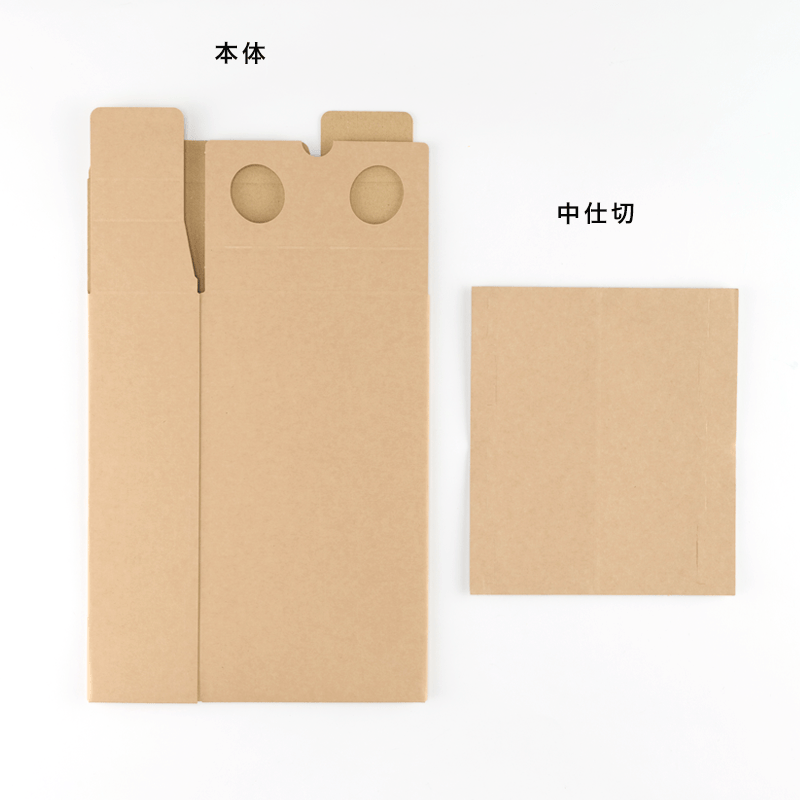 クラフト調でシンプルな無地中瓶2本縦入ケースです。