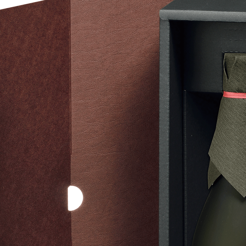 レザー調にエンボス加工された表面の手触りと温かみのあるブラウンカラーが想いを包み込んでお届けします。